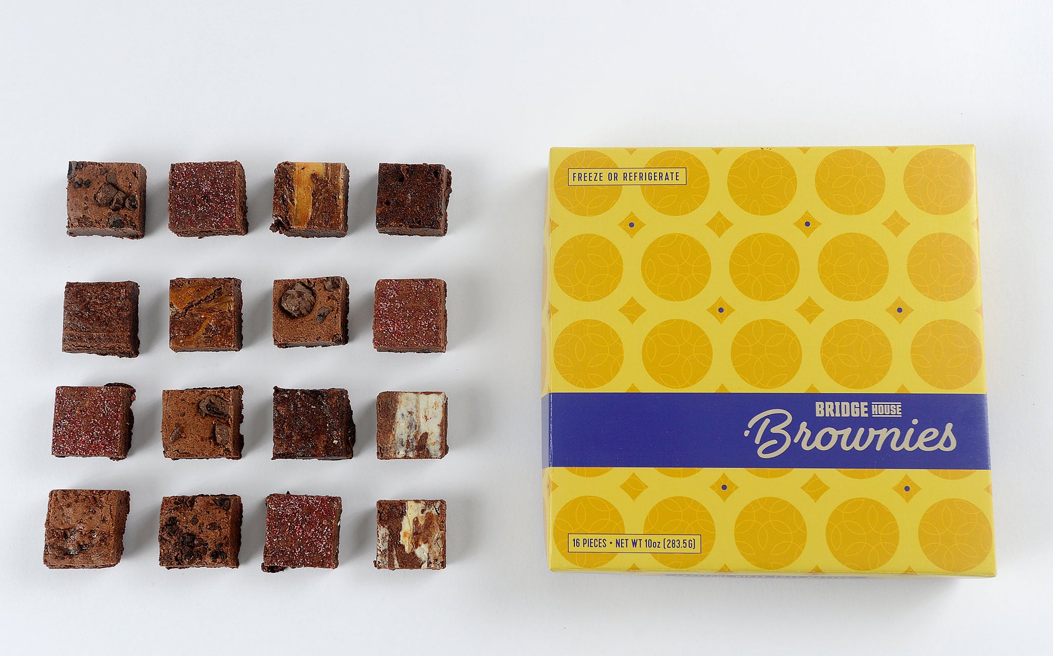 Contents: 16 Assorted Truffle Brownies (1.25" x 1.25");